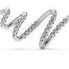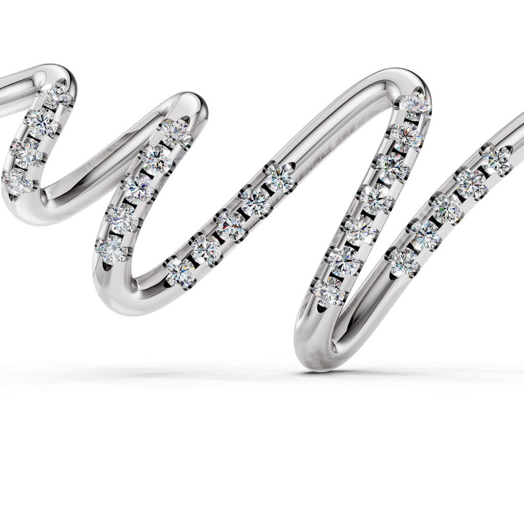 The Flow Necklace captures the movement of light in sculpted silver waves lined with diamonds. Its effortless curvature represents fluid strength — soft, luminous, and endlessly modern.