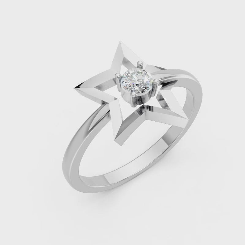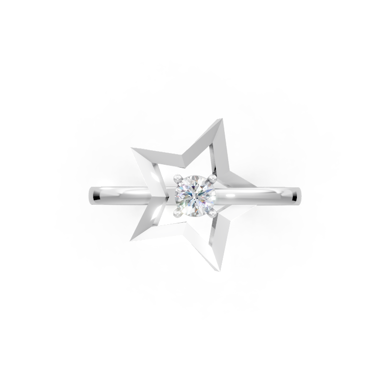 Celestial minimalism at its finest — the Nova Ring captures the clarity of a single star framed in sleek geometry. A faceted lab diamond glows from the heart of a five-point form, reminding you that your inner light never dims, only reflects.