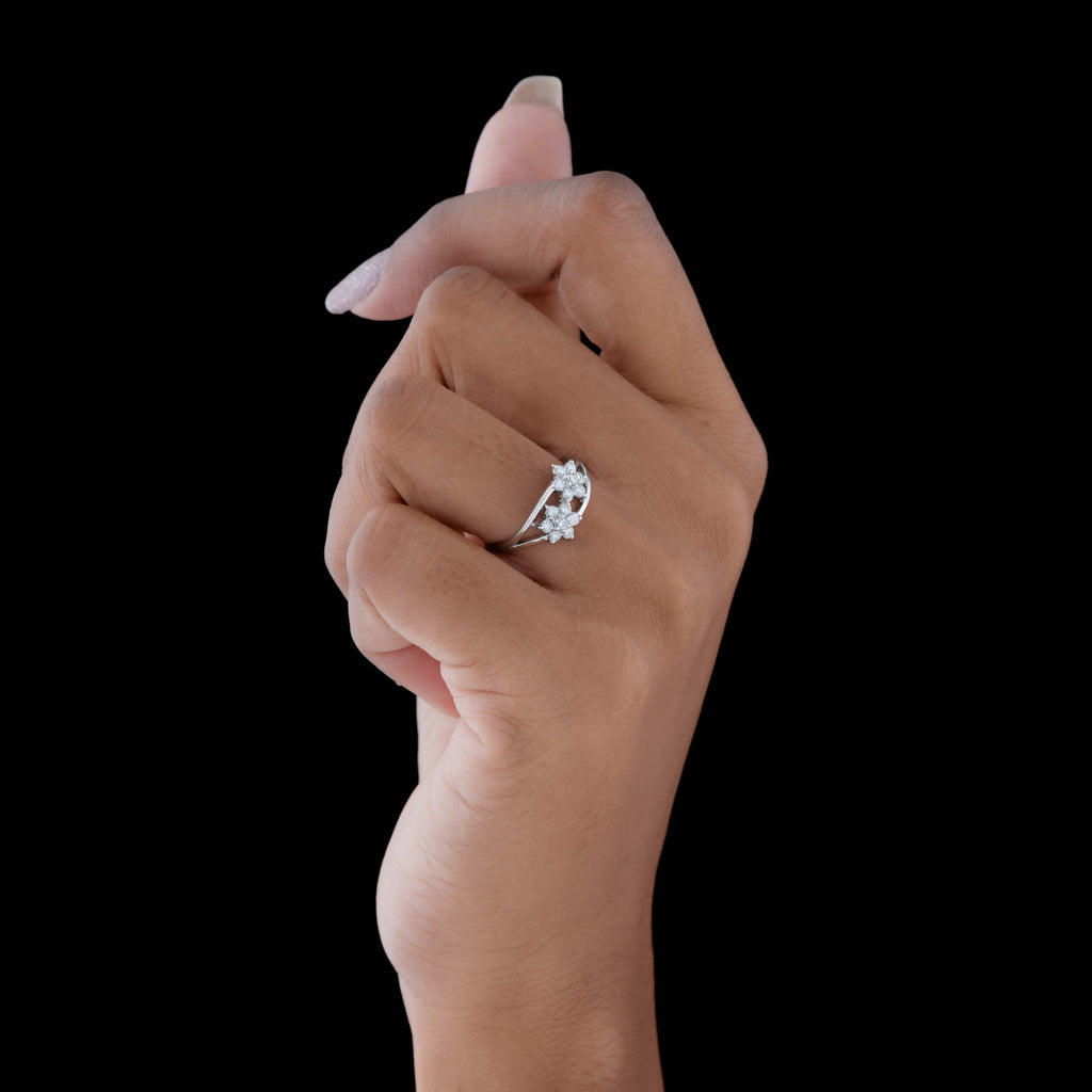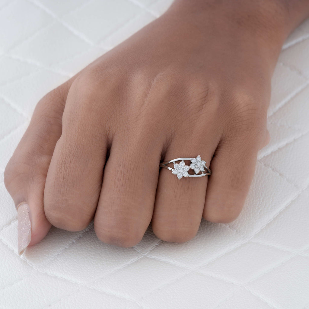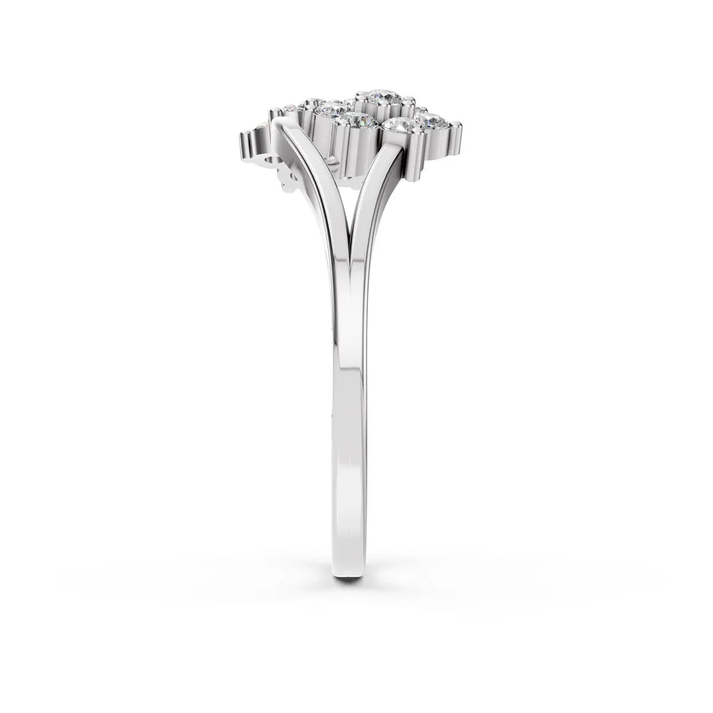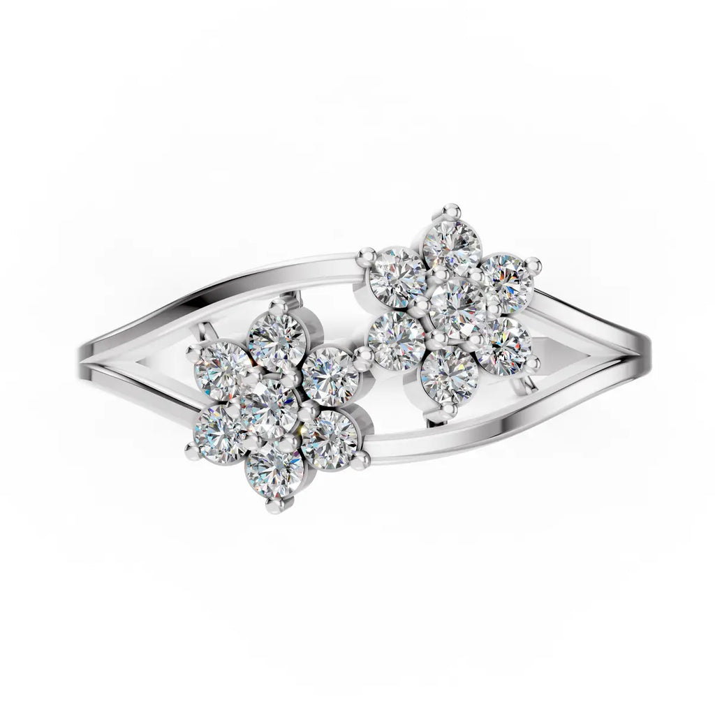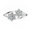 A duet of radiance — the Solace Ring frames twin clusters of diamonds across an open band, balancing modern structure with subtle fluidity.