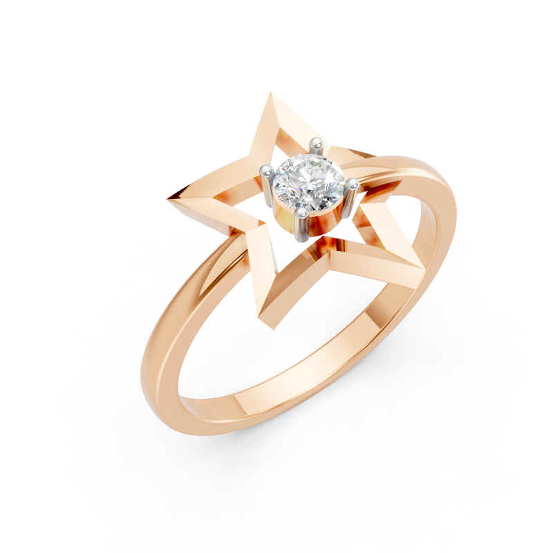 Celestial minimalism at its finest — the Nova Ring captures the clarity of a single star framed in sleek geometry. A faceted lab diamond glows from the heart of a five-point form, reminding you that your inner light never dims, only reflects.