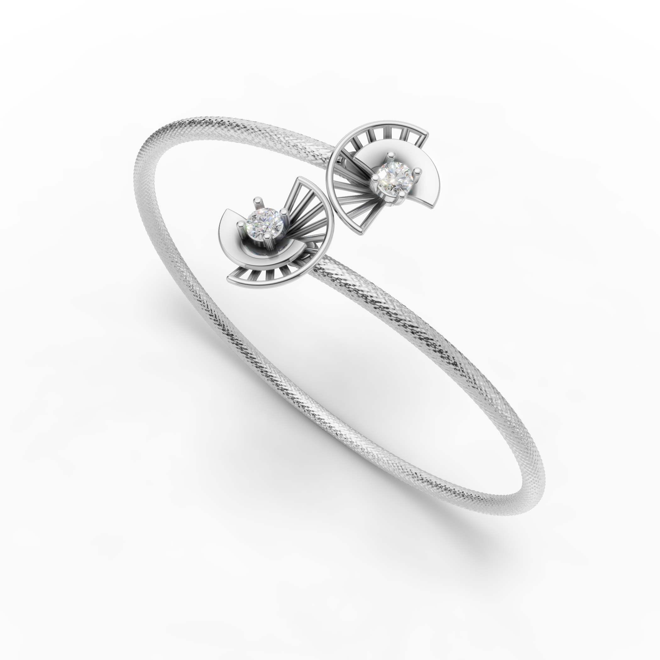 Inspired by the golden hour, the Solé Bangle captures the gentle radiance of the sun through its half-arc form and open silhouette. Two lab-grown diamonds rest in perfect harmony — a quiet nod to duality, balance, and brilliance. Designed to be both sculptural and subtle, it transitions effortlessly from day polish to evening shine.