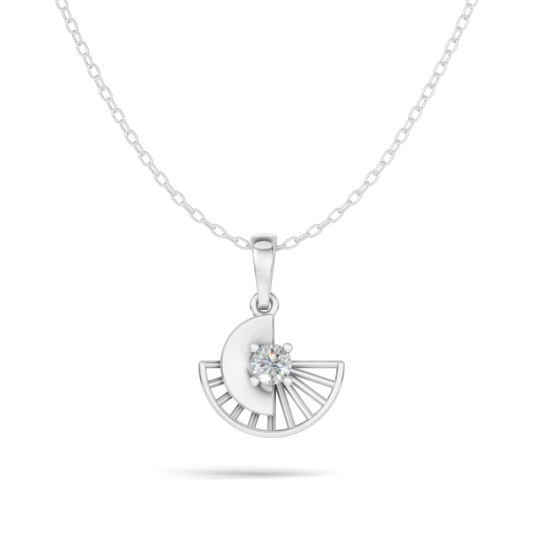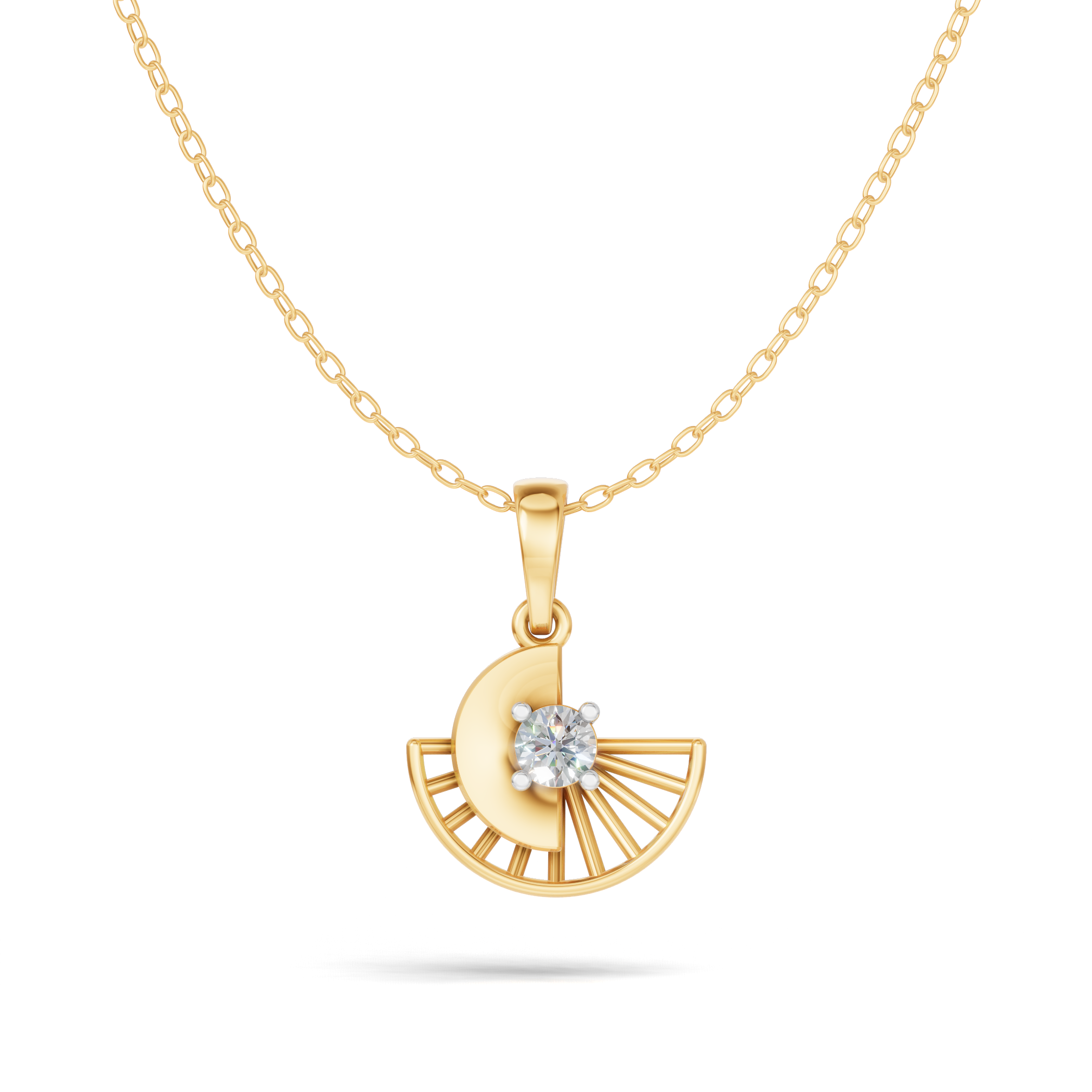 The Solé Pendant embodies the poetry of light — a half-circle design cradling a single lab diamond that radiates centered calm. Minimal yet meaningful, it’s a wearable ode to the warmth of the sun and the balance of modern geometry.