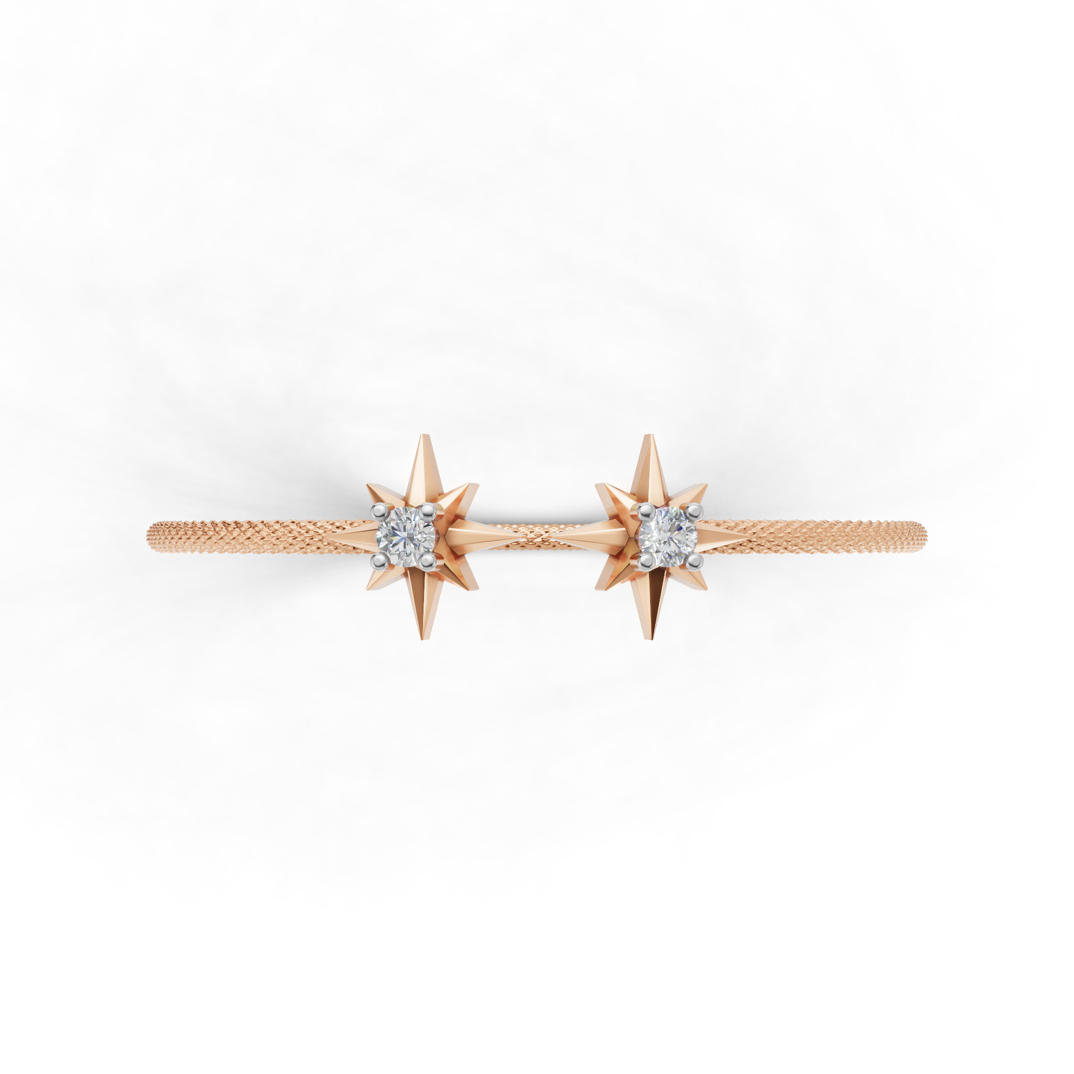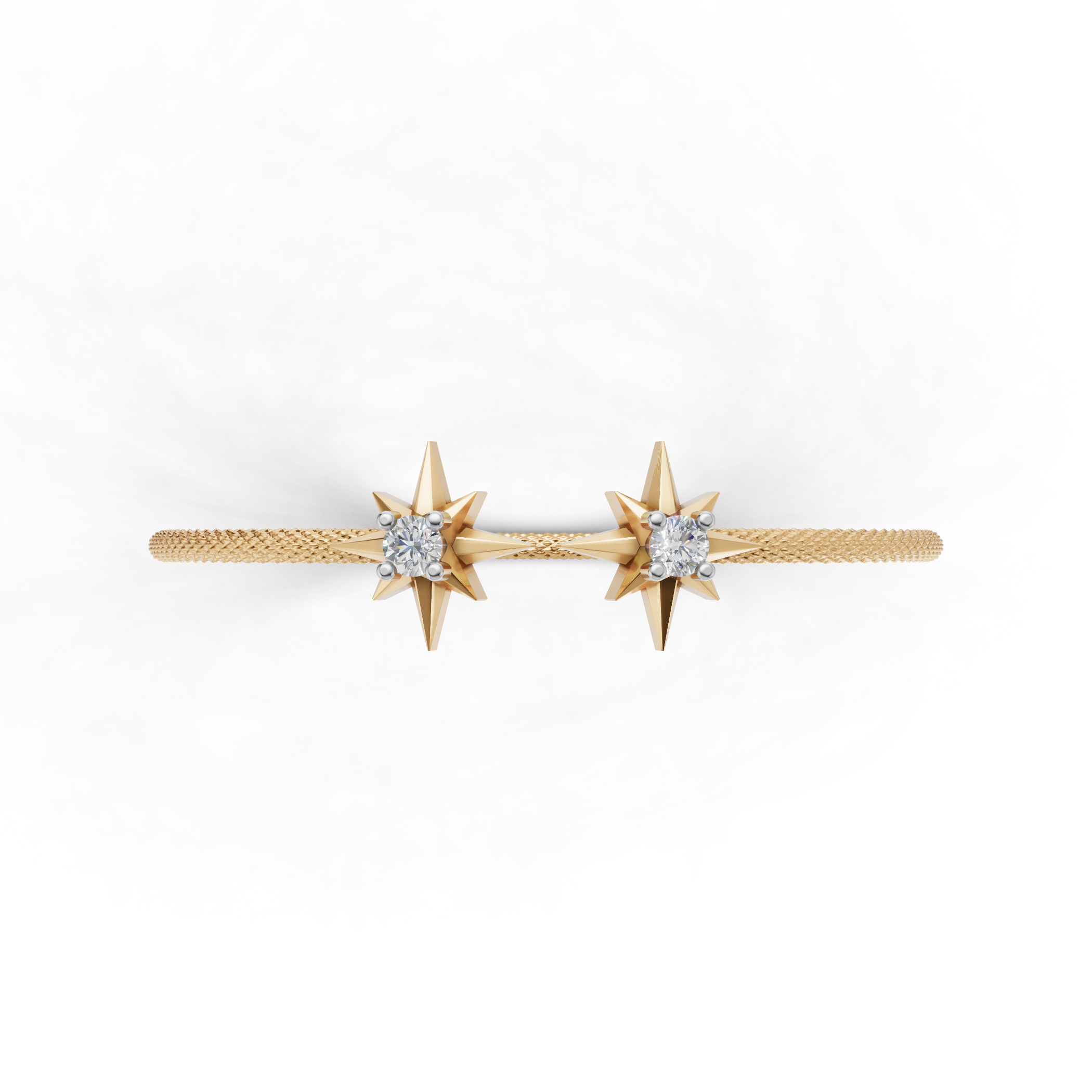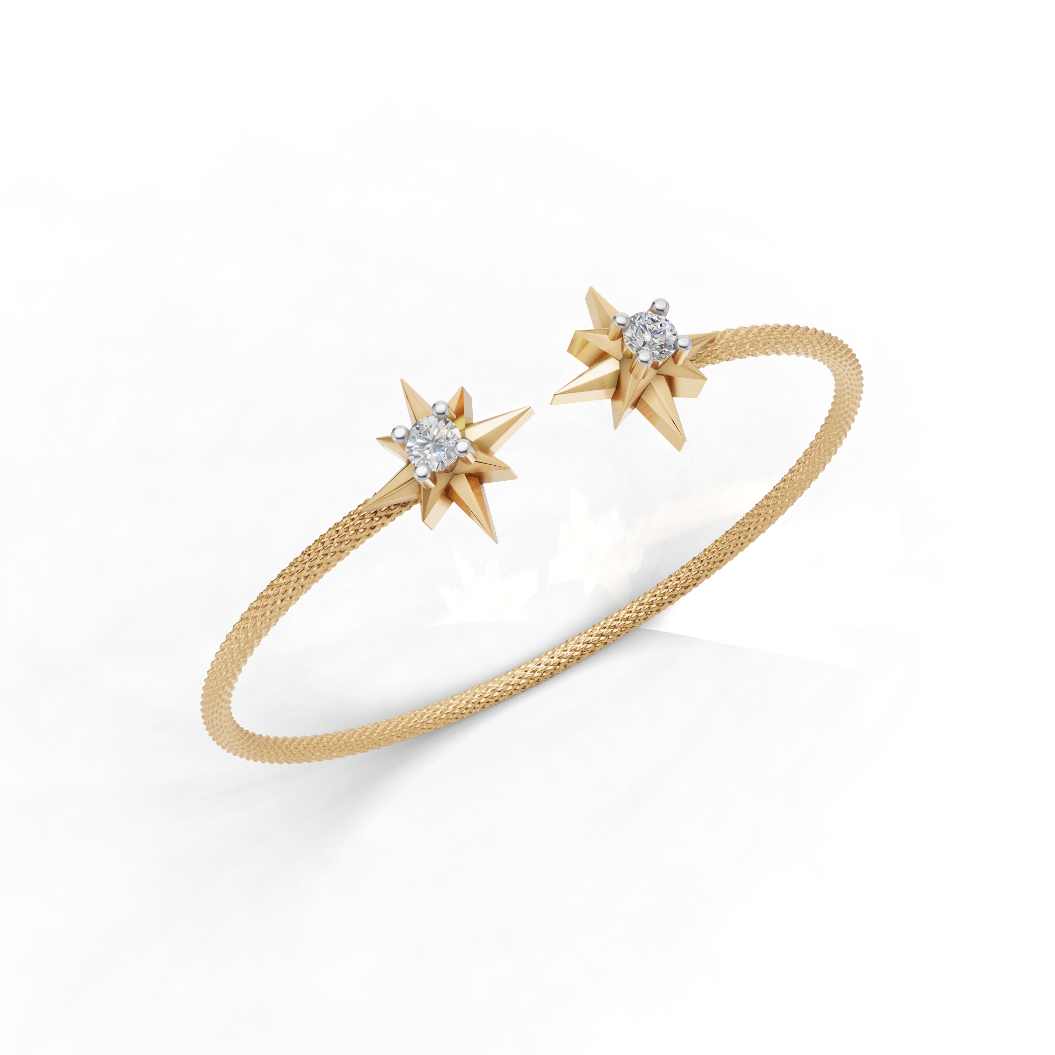A constellation wrapped around your wrist — the Stellar Bangle captures the brilliance of the North Star in motion. Designed with twin star motifs set with precision-cut lab diamonds, this piece radiates a sense of direction and calm strength. A perfect fusion of celestial light and sculptural grace.